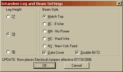 Select Auto C-Leg/Beam <ITLEG> from the Legs/Beams pull-down of the In Tandem menu.